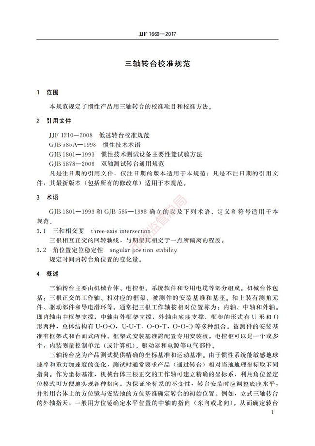JJF1669-2017三轴转台校准规范