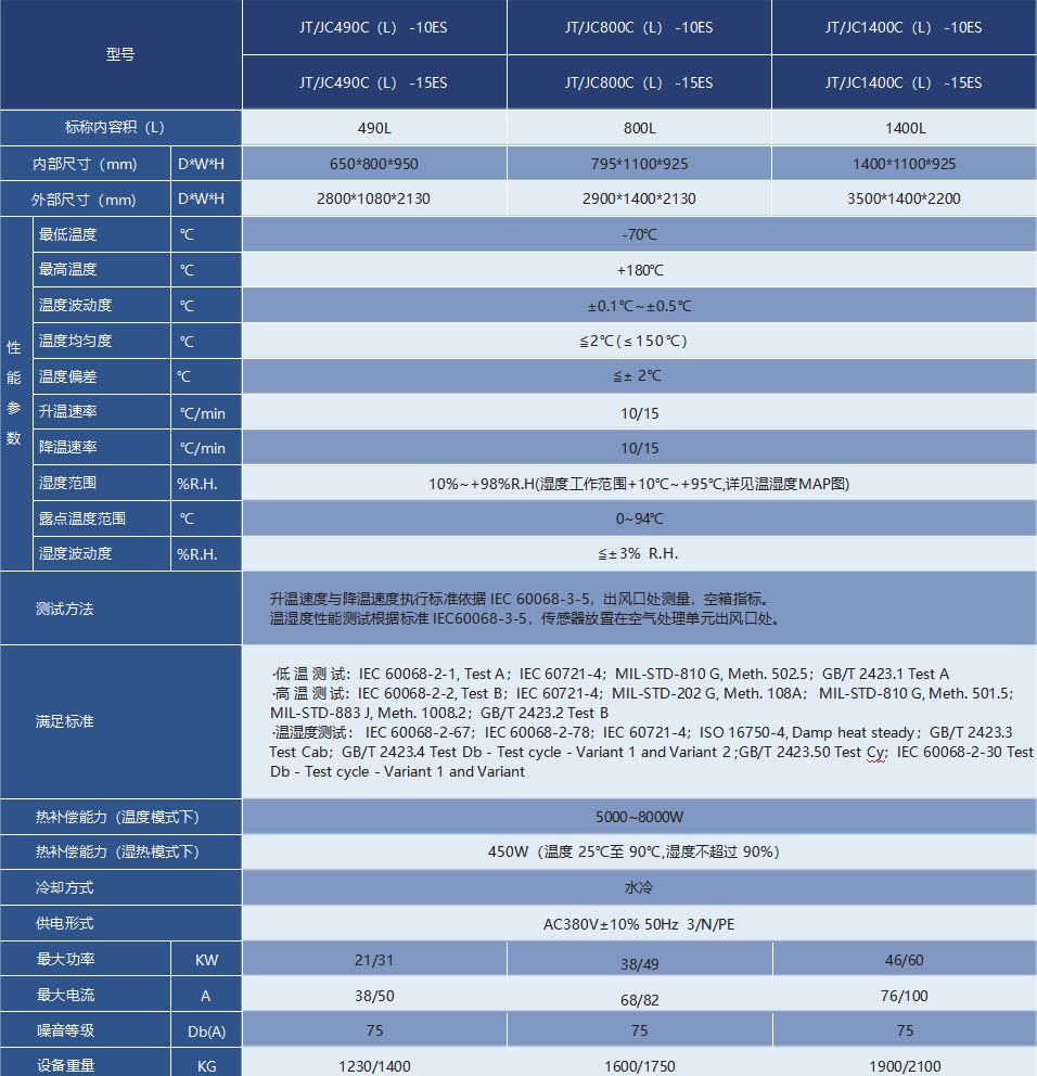 J-ES系列高低温快速温度变化湿热试验箱参数表