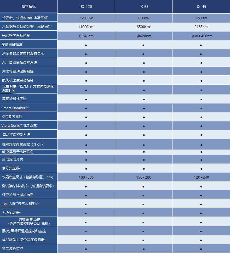 ◆ 通过内外过滤器模拟不同户外试验条件。