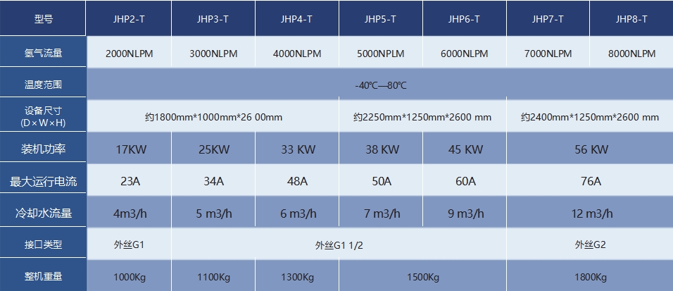 JHP氢气预冷装置参数表